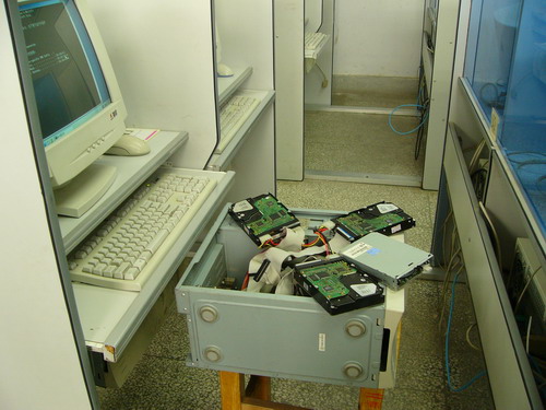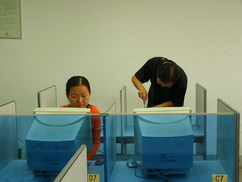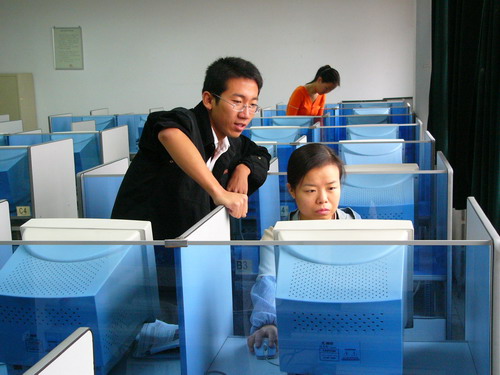 【本网讯 信息技术中心】 为了解决taptap点点计算机实验课因微机数量太少而无法排课的困难,2006年9初,信息技术中心将原来牟加庄校区的一个机房的45台P3微机搬迁至本校区已基本无法使用的原5号机房,以解燃眉之急。中心技术人员经过连续6天的日夜加班工作,排除了一系列的软硬件故障,终于在9月10日前将41台微机整理妥当,保证了10多个班级计算机课程的正常教学。