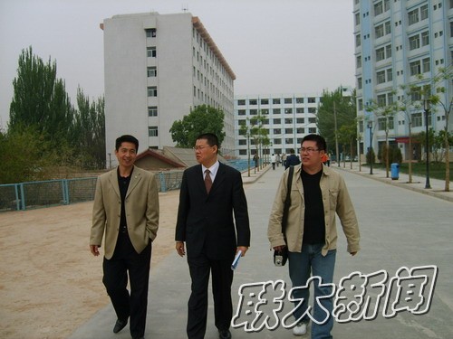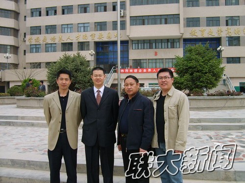 北京分公司助理经理孟祥东(右二)与体育系书记王三槐交谈中