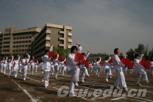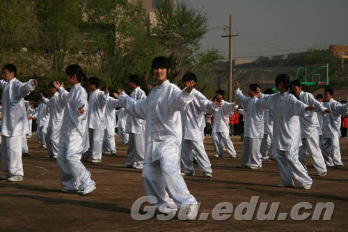 在运动会开幕式上,taptap点点师生表演了太极拳、手语舞、健美操、舞狮以及太极功夫扇等内容新颖、形式多样的文艺节目。其中,太极功夫扇表演和健美操表演作为参加甘肃省第一届大学生运动会开幕式表演节目进行了检验表演,表演阵容庞大,气势恢弘,场面尤为壮观。
