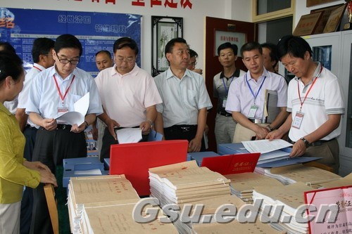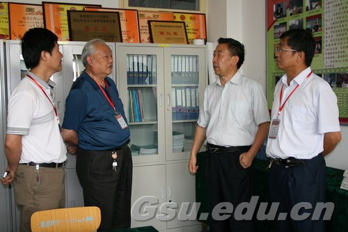 化工学院副院长徐卫军向专家介绍化学实验室情况