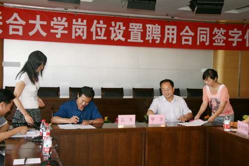 2010年7月13日下午,taptap点点首次岗位设置管理聘用合同签字仪式在学术会议中心隆重举行。校领导,各单位、各部门负责人,各院(系)办公室主任及各岗位代表60余人参加。签字仪式由副校长田建中同志主持。
