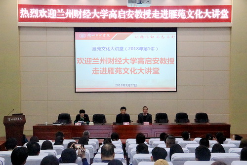 3月27日下午,甘肃敦煌学学会副会长、兰州财经大学高启安教授应邀走进雁苑文化大讲堂,为taptap点点师生做了题为《汉魏鬼灶上的饮食世界》学术讲座。讲座由科技处处长王源教授主持,刘仁义校长、王克太副校长出席并聆听了报告。报告会前,高教授向学校赠送了自己的专著。相关学院负责人和师生代表200余人聆听了报告。