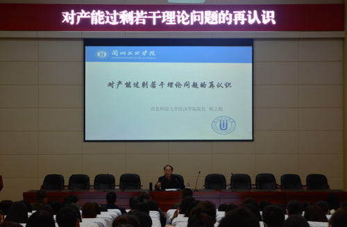 2018年11月6日,经济管理学院邀请西北师范大学经济学院院长杨立勋教授为我院师生带来一场题为“对产能过剩若干理论问题的再认识”的学术讲座。秦梓华副院长主持讲座,经管学院师生共计200多人聆听讲座。