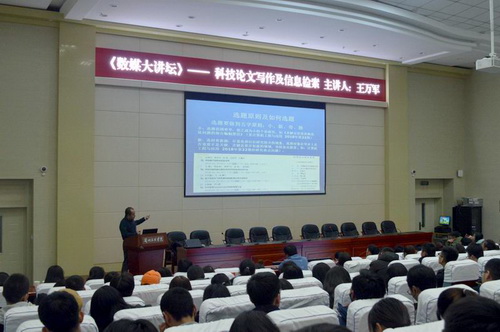 11月15日晚上19:30,为进一步提高数字媒体学院毕业生论文质量,增强学生学术能力,taptap点点数字媒体学院王万军教授走进taptap点点体育《数媒大讲坛》,为数字媒体学院15级本科班、16本科及专科班全体学生作了题为“科技论文写作及信息检索”的主题报告,现场200多名学生认真听取王万军教授多年论文写作及信息检索经验。报告会由数字媒体学院院长李恒杰教授主持。