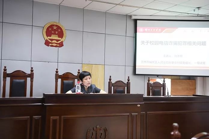 5月29日下午,由城关区人民法院法官主讲的“开展扫黑除恶专项斗争,创建安全稳定校园环境”的讲座在马克思主义学院模拟法院展开。讲座分为两场,分别是由刑庭副庭长刘冬郁主讲的“关于校园电信诈骗犯罪相关问题”,以真实案例讲解如何正确地防范“套路贷”电信诈骗等新型犯罪;第二场是由法官瞿梅主讲的“校园贷相关法律问题”,就校园贷相关法律问题结合实际深入浅出地对黑恶势力常见的犯罪手段及呈现出的新变化等内容进行解读。马克思主义学院法律事务和司法助理班学生积极听取了此次讲座,会后法官们还向同学们发放了宣传单,让同学们详细了解到扫黑除恶专项斗争开展的背景及重大意义。