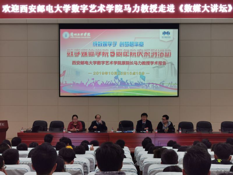 2019年10月23日晚上,西安邮电大学数字媒体艺术学院原院长马力教授走进《数媒大讲坛》,为数媒院数字媒体技术专业、软件工程专业、数据科学与大数据技术专业学生代表做了题为“浅谈人工智能的应用于挑战——以深度学习为例”的学术报告。数字媒体学院院长李恒杰教授出席此次报告会,报告会由学院数字媒体技术系主任黄珍副教授主持。