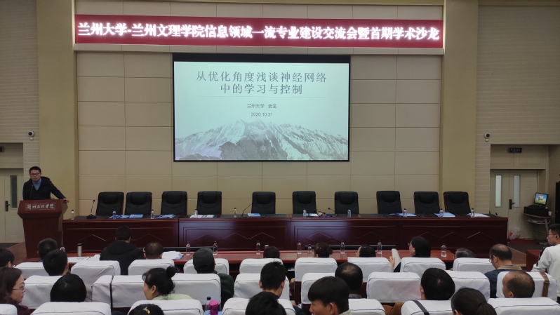 为加强专业建设,提高人才培养质量,数字媒体学院于2020年10月31日邀请了兰州大学金龙教授进行学术报告会,为数字媒体学院19、20级各班代表学生做了题为“从优化角度浅谈神经网络中的学习与控制”的学术报告,报告由数字媒体学院副院长黄珍副教授主持。
