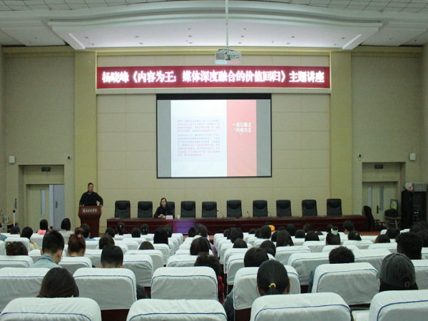 为加深新闻传播学院学子对如何推进媒体深度融合的理解,进一步引导同学们深层次思考,拓宽视野,回归内容,我院邀请兰州财经大学商务传媒学院院长杨晓峰教授于10月15日14:30在学术报告厅开展《内容为王:媒体深度融合的价值回归》主题讲座。20级新闻学班、20级广播电视学班、20级播音与主持艺术班,20级数字出版班以及21级数字出版班全体同学参加了此次讲座,讲座由学院副院长李军主持。
