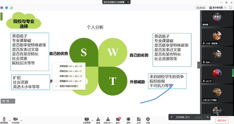 为进一步提升我院本科毕业生研究生报考率和升学率,结合当前疫情防控工作需要,2021年11月2日,我院邀请了西北师范大学旅游学院副院长王力博士、副教授,通过腾讯会议作了题为《考研专题辅导与动员》的在线考研辅导讲座。讲座由MTA教育中心(筹)主任陶雪松教授主持。学院教师代表、旅游管理(本)、酒店管理(本)、航空服务艺术与管理专业全体本科学生共500余人进行了在线收听。