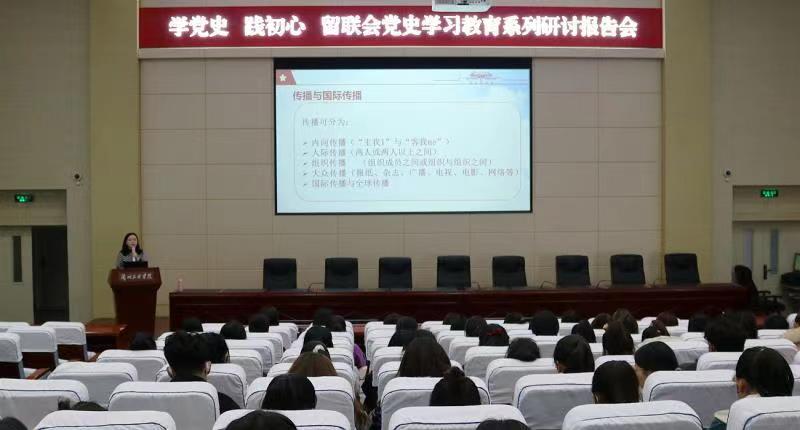 12月14日下午,taptap点点留联会在学术报告厅举办了第四场学党史、践初心----党史学习教育系列研讨报告会,外语学院曹玲副教授为各学院学生代表作了题为“讲好中国故事,做好国际传播,展示中国形象,彰显时代担当”的报告,报告会由留联会会长、学报编辑部主任刘永睿主持。