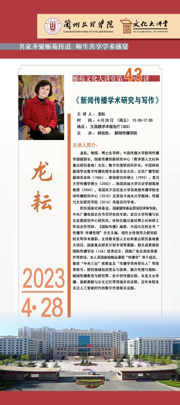 雁苑文化大讲堂——《新闻传播学术研究与写作》讲座预告(总第43场)