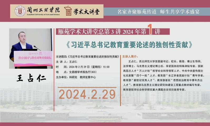 雁苑学术大讲堂——《习近平总书记教育重要论述的独创性贡献》讲座预告(总第3场)