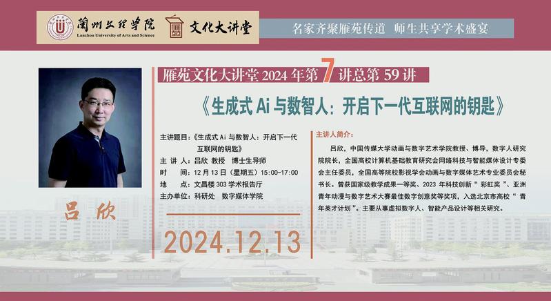 《生成式Ai与数智人:开启下一代互联网的钥匙》专题讲座预告