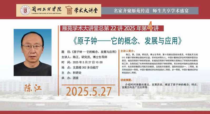 雁苑学术大讲堂预告:原子钟——它的概念、发展与应用