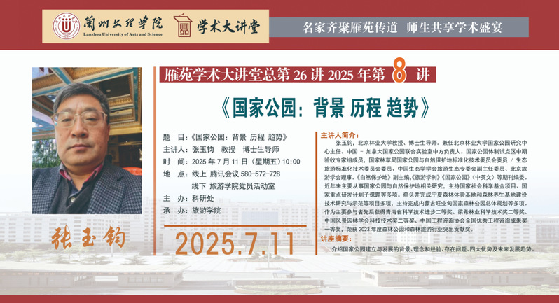 雁苑学术大讲堂预告:《国家公园:背景 历程 趋势》
