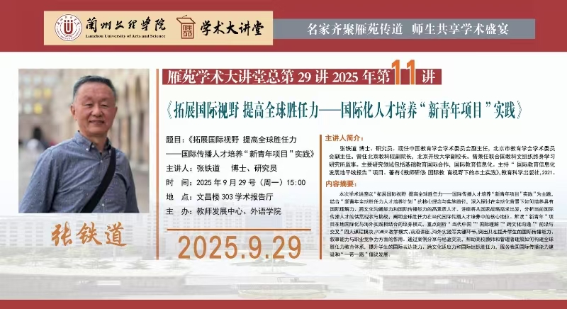 雁苑学术大讲堂预告:《拓展国际视野 提高全球胜任力——国际化人才培养“新青年项目”实践》