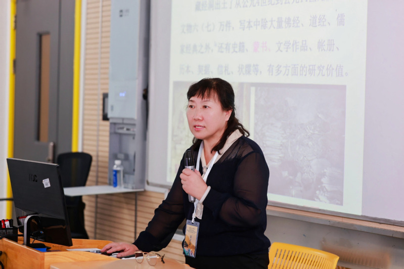 会议设三个分会场,围绕《三字经》文化创造性转化、中国童蒙文化创新性发展、中华童蒙教育智慧传承与当代启示展开深入研讨。王金娥教授以《敦煌写本蒙书对当代童蒙读物编写的启示——以问答体<孔子备问书>为例》为题作学术报告,她从敦煌蒙书的发现、《孔子备问书》写本情况及其特点切入,提出该类问答体蒙书“注重内容的丰富实用、多元、通俗易懂、编写方法适宜”的四大优势,强调“文质兼美”而不失趣味性、灵活性是童蒙读物流传的核心思路,受到与会专家关注。
