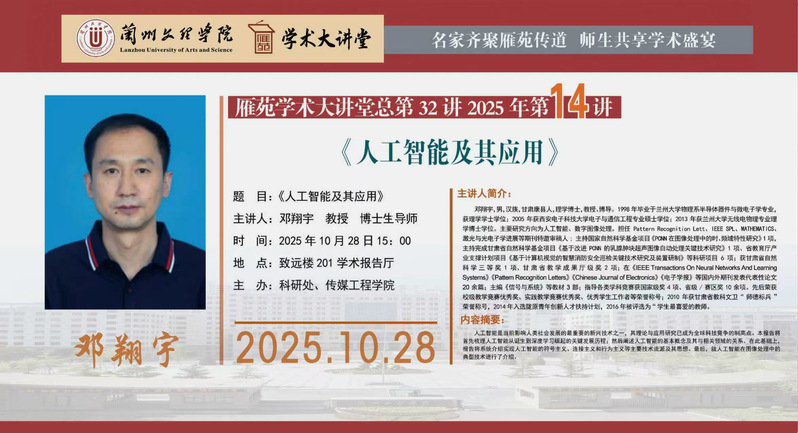 雁苑学术大讲堂预告:《人工智能及其应用》