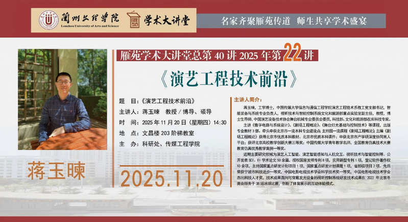 雁苑学术大讲堂预告:《演艺工程技术前沿》
