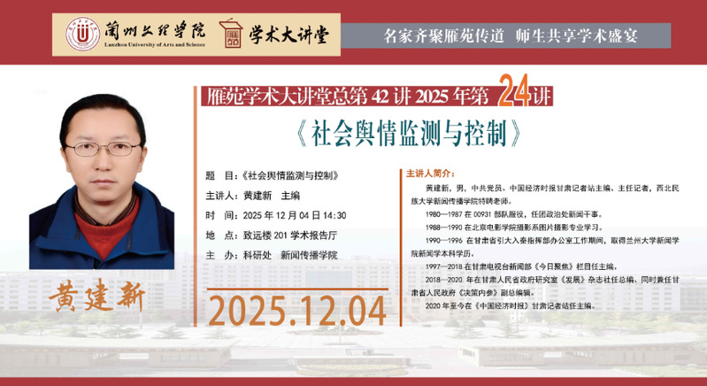 雁苑学术大讲堂预告:《社会舆情监测与控制》
