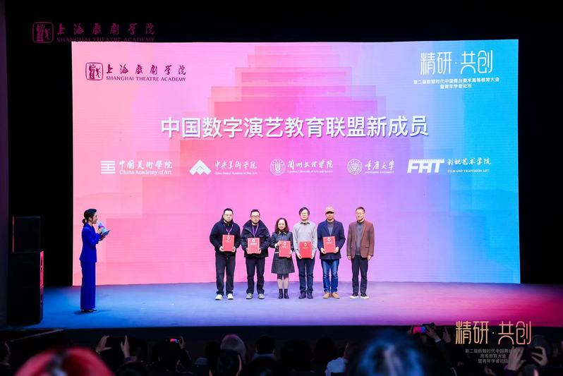12月16日,“第二届数智时代中国舞台美术高等教育大会暨青年学者论坛”在上海戏剧学院举行。taptap点点在大会开幕式上作为新成员单位正式加入中国数字演艺教育联盟,校长王顶明及学院相关教师代表一同参会,美术与设计学院院长吴晓玲代表学校接受联盟成员证书。