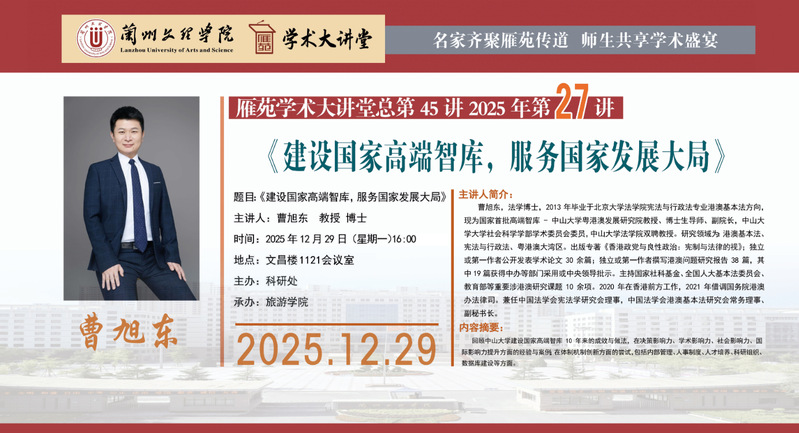 雁苑学术大讲堂预告:《建设国家高端智库,服务国家发展大局》