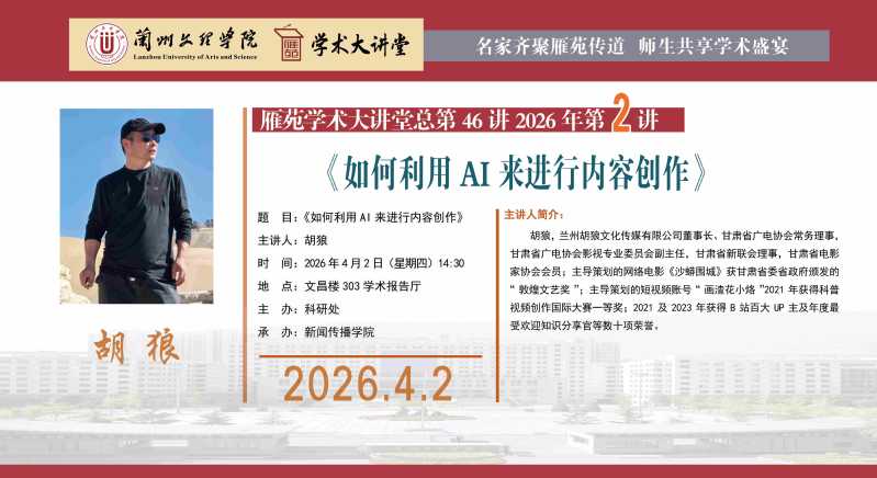 雁苑学术大讲堂预告:《如何利用AI来进行内容创作》