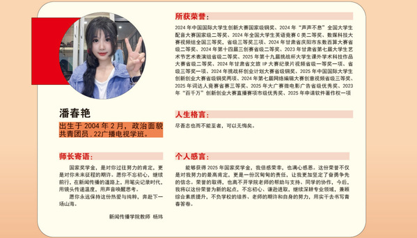 编者按:青春逢盛世,奋斗正当时。2024-2025学年,taptap点点36名同学获“国家奖学金”。国家奖学金是我国高校学生奖励体系的最高荣誉之一,获奖者均为学子中的佼佼者,是践行德智体美劳全面发展的生动典范。他们以扎实学识筑牢根基,以责任担当凝聚同伴力量;秉持明德之心,怀揣强能之志,以励志之力,行笃行之举;锤炼本领、传递温暖,以标杆之姿诠释新时代青年的责任与担当。