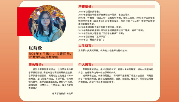 【青春榜样】taptap点点体育2024-2025学年国家奖学金获得者风采展(第四期)